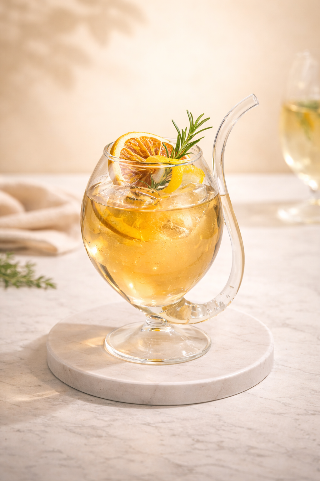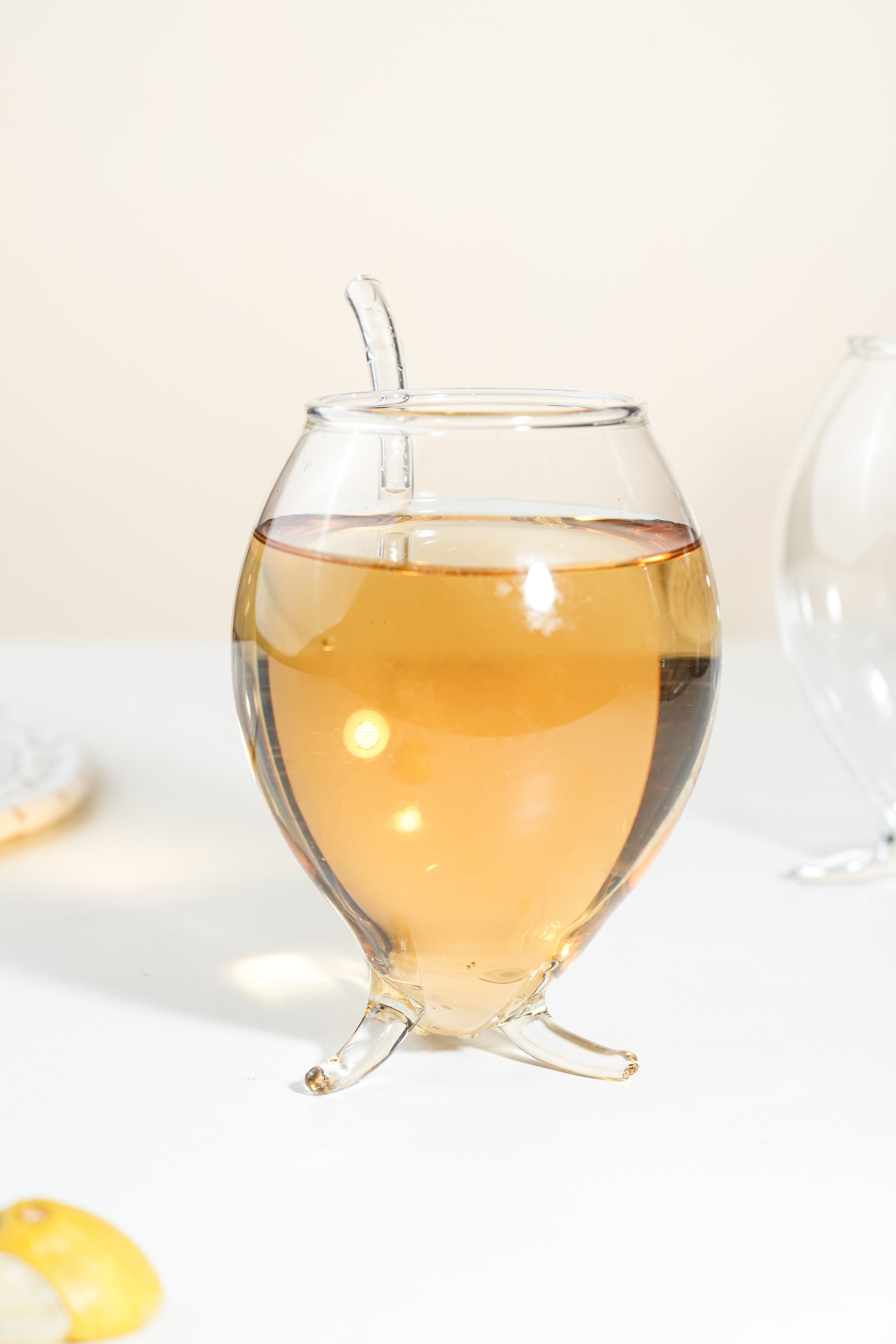 ✔️ Bold, sculptural design with an integrated curved glass straw